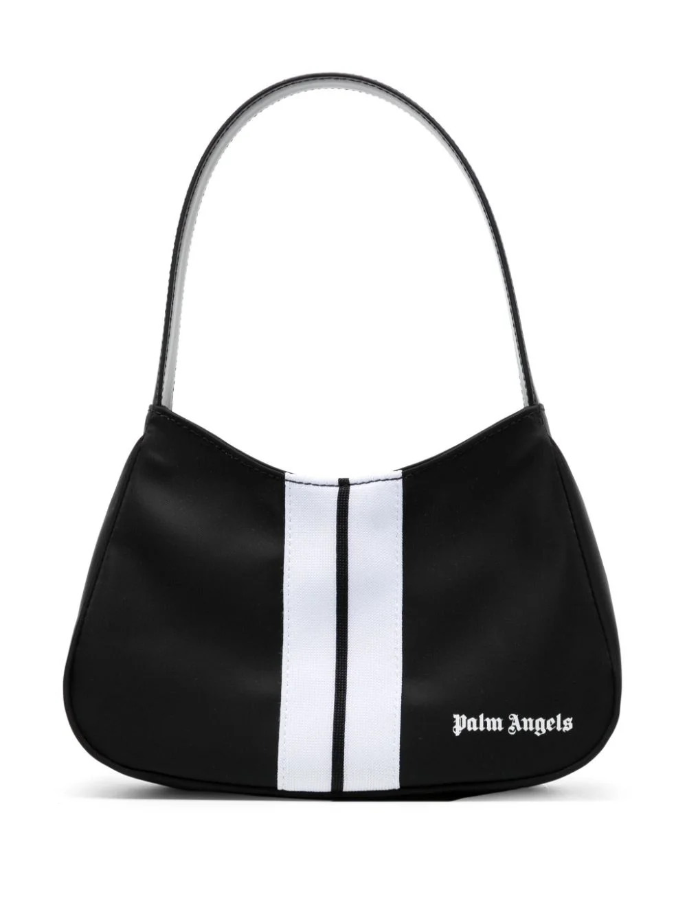 Venice logo-print shoulder bag Inspired by an athleisure aesthetic, this Venice Track bag is detailed with track stripes, complemented with the brand's distinctive logo lettering on the front. Highlights - Black/white - Cotton - Leather trim - Grosgrain ribbon trim - Logo print to the front - Silver-tone hardware - Top zip fastening - Long top handle - Main compartment Made in Italy Composition Lining: Cotton 100% Body: Calf Leather 100% Outer: Polyamide 100% SIZE & FIT Model measurements Height 5 ft 10 in(1.77 m) Bust/Chest 31.49 in(80 cm) Hips 35.43 in(90 cm) Waist 25.19 in(64 cm) Measurement DEPTH 3.54 in(9 cm) HANDLE 7.08 in(18 cm) HEIGHT 5.9 in(15 cm) WIDTH 9.44 in(24 cm)