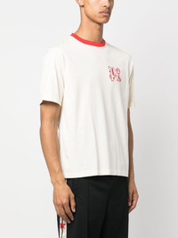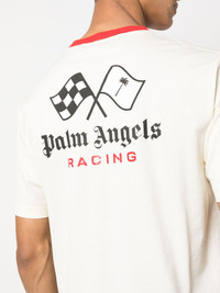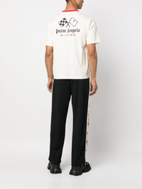 Racing monogram-print T-shirt Palm Angels delves into the world of racing in its collaboration with the HAAS F1 Team. Introducing two collections; Palm Angels Racing and Palm Angels x HAAS F1 Team, the brands unite in their drive to succeed and contemporary aesthetic. Featuring a logo embroidery at the chest, this cotton T-shirt from the Palm Angels Racing line embraces the buzzing trackside atmosphere in its waving flag print to the rear. Highlights - White/red/black - Cotton - Embroidered logo at the chest - Graphic print to the rear - Crew neck - Short sleeves - Straight hem - This capsule collection is genderless and uses standard men's sizing, please keep this in mind when selecting your size. Made in Italy Composition Cotton 100%, Polyester 100% SIZE & FIT Model measurements Height 5 ft 11 in(1.8 m) Bust/Chest 31.49 in(80 cm) Hips 36.22 in(92 cm) Waist 25.59 in(65 cm) FittingInformation This unisex piece is designed for a relaxed fit whether you usually select women's or men's sizes Made from a midweight non-stretch fabric, this piece offers minimal elasticity when worn Washing instructions Hand Wash
