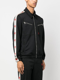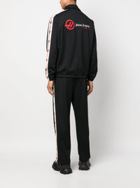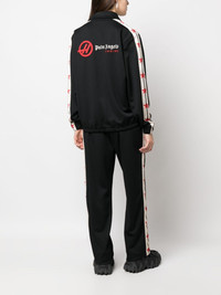 logo-embroidered track jacket Palm Angels delves into the world of racing in its collaboration with the HAAS F1 Team. Introducing two collections; Palm Angels Racing and Palm Angels x HAAS F1 Team, the brands unite in their drive to succeed and contemporary aesthetic. Blending Italian design with American grandeur, this track jacket from the Palm Angels Racing line delivers logo detailing and stars-and-stripes graphics in trackside colours of black, red and white. Highlights - Black/white/red - Graphic print to the rear - Embroidered logo at the chest - Star motif - Side stripe detailing - Classic collar - Front zip fastening - Two zip-fastening chest pockets - Two front welt pockets - Long sleeves - Straight hem - Ribbed trim - This capsule collection is genderless and uses standard men's sizing, please keep this in mind when selecting your size. Made in Italy Composition Polyester 60%, Cotton 40% Lining: Polyester 100% Outer: Polyester 100% SIZE & FIT Model measurements Height 5 ft 11 in(1.8 m) Bust/Chest 31.49 in(80 cm) Hips 36.22 in(92 cm) Waist 25.59 in(65 cm) FittingInformation This unisex piece is designed for a relaxed fit whether you usually select women's or men's sizes Washing instructions Hand Wash