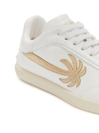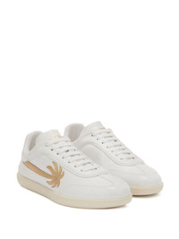 x Tod's leather low-top sneakers Palm Angels joins iconic label Tod's to create its latest footwear silhouette. Made in Italy from supple calf leather, these low-top sneakers present a seamless blend of both brand's most recognisable motifs: a palm tree-patch at the side and rubber Gommino applique at the heel. Highlights - Cream white/sand beige/gold-tone - Calf leather - Front lace-up fastening - Logo-debossed tongue - Round toe - Palm tree patch at side - Branded heel counter - Signature gommino detail at heel counter - Flat rubber outsole Made in Italy Composition Outer: Calf Leather 90%, Goat Skin 10% Sole: Rubber 100% Lining: Calf Leather 100%