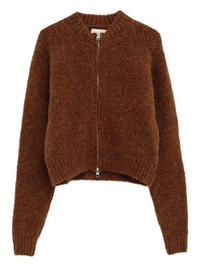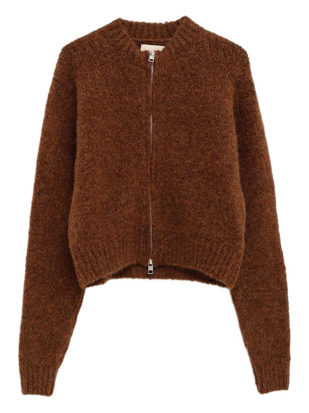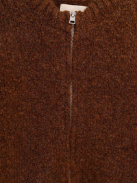 Hasta Luego zip-up cardigan Highlights - Brown - Hairy texture - Rib-knit trim - Zip closure - Text on the back Imported Composition Wool 36%, Other Materials 35%, Alpaca 15%, Polyamide 13%, Lycra 1% Washing instructions Read Manufacturer Guidelines