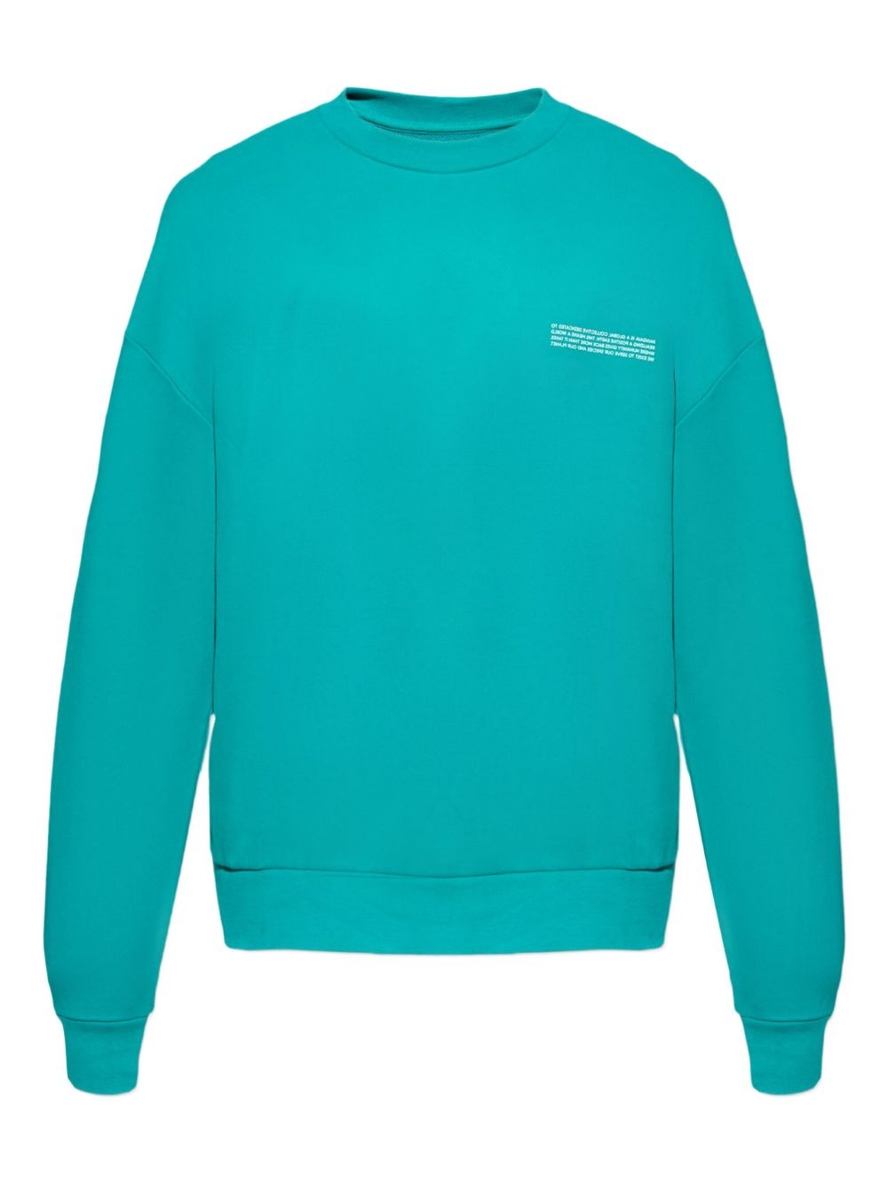 crew-neck organic cotton sweatshirt Highlights - Teal green - Organic cotton - Crew neck - Long sleeves - Text detail Imported Composition Organic Cotton 100% SIZE & FIT FittingInformation Designed to be unstructured, offering a loose fit throughout Made from a midweight non-stretch fabric, this piece offers minimal elasticity when worn Washing instructions Read Manufacturer Guidelines