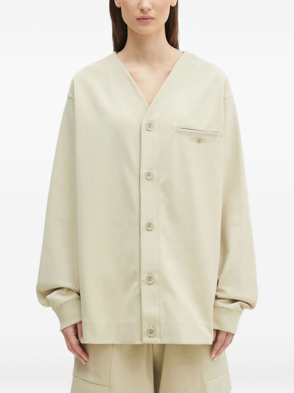 DNA button-up shirt jacket Highlights - Beige - V-neck - Front button fastening - Long sleeves - Button-fastening chest pocket - Straight hem Imported Composition Recycled Cotton 45%, Organic Cotton 45%, Elastane 10% Washing instructions Machine Wash