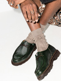 Michael Lisse leather lace-up shoes Someone once said one should choose their bed and shoes wisely, as one spends a lot of time in both. And truth is, these leather lace-up shoes seem like a very good option. Walking in Paraboot will be such a dream. Highlights - Green - Leather - Whipstitch trim - Contrast stitching - Branded insole - Round toe - Front lace-up fastening - Flat rubber sole Made in France Composition Outer: Leather 100% Lining: Leather 100% Sole: Rubber 100% SIZE & FIT Model measurements Height 6 ft 2 in(1.89 m) Bust/Chest 39.76 in(101 cm) Hips 37.4 in(95 cm) Waist 29.92 in(76 cm) FittingInformation This piece fits large - you might like to get one size down Measurement HEEL 0.98 in(2.5 cm) Sole height 0.59 in(1.5 cm)