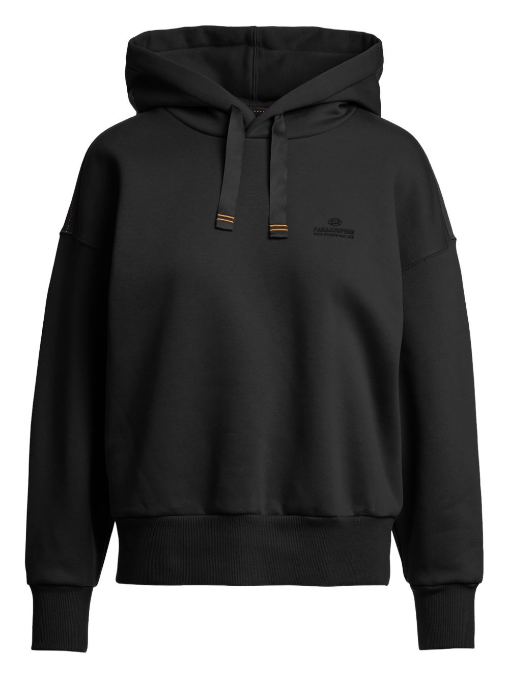 drawstring-hood sweatshirt Highlights - Black - Drawstring hood - Dropped shoulders - Embroidered logo - Ribbed cuffs - Ribbed hem Imported Composition Cotton 100% Washing instructions Read Manufacturer Guidelines