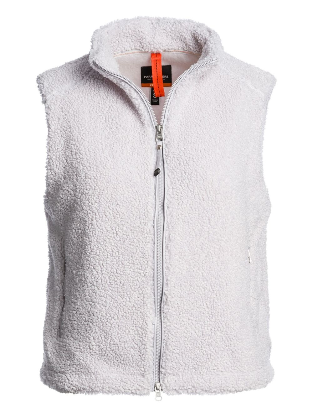 high-neck zip-front waistcoat Highlights - Off-white - Fleece texture - Zip fastening - High neck - Sleeveless - Side pockets Imported Composition Recycled Polyester 100% Washing instructions Machine Wash