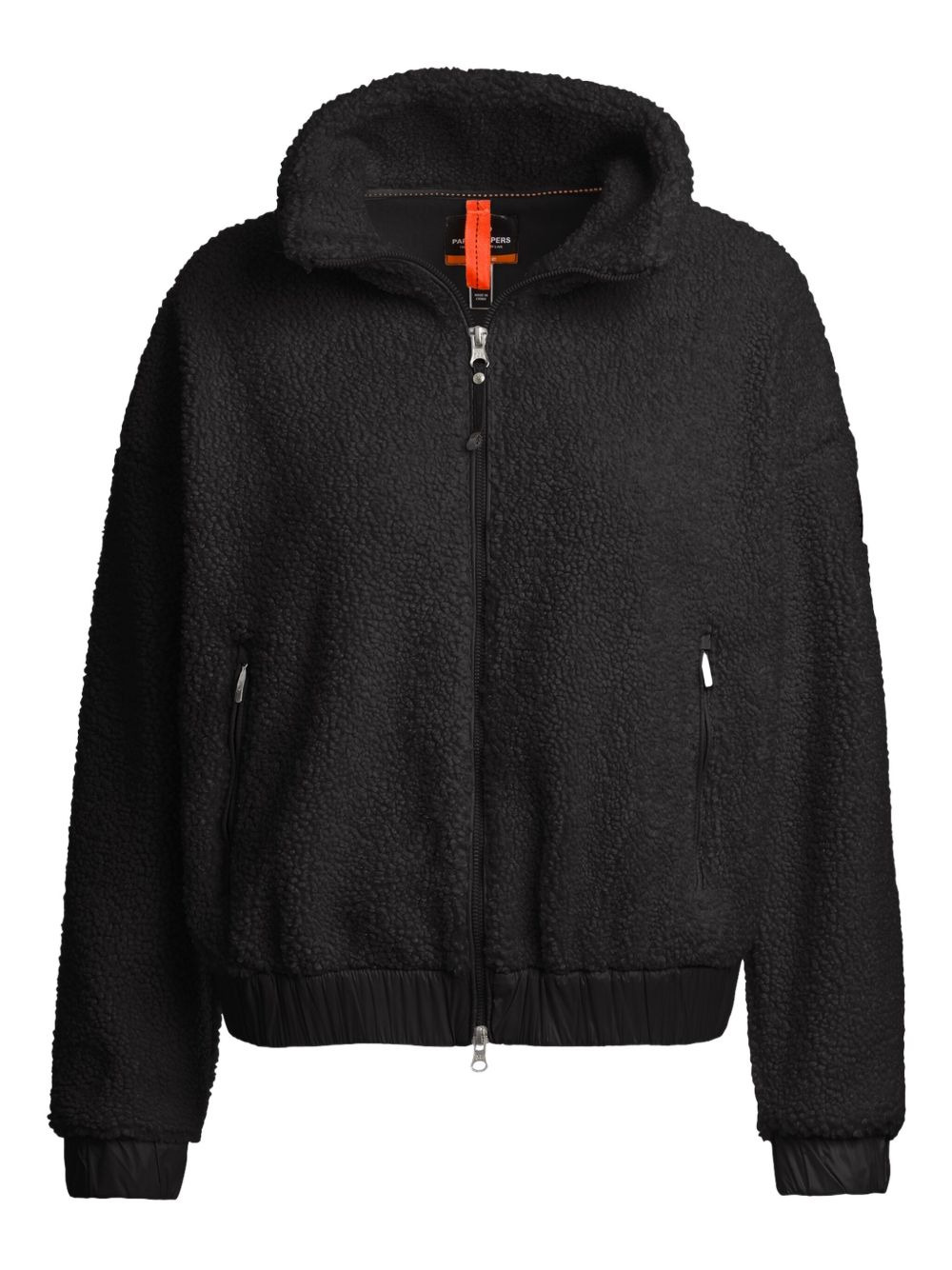 high-neck zip-up jacket Highlights - Black - Fleece texture - Zip fastening - High neck - Welt pockets - Elasticated hem - Logo patch Imported Composition Fabric 100% Washing instructions Read Manufacturer Guidelines