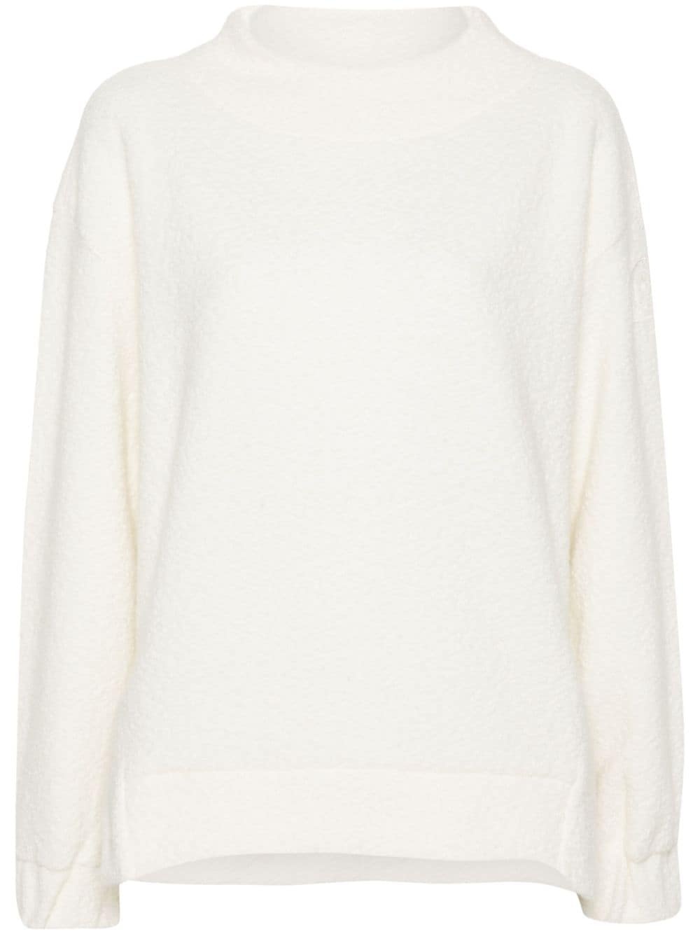Kira logo-patch boucle jumper Highlights - White - Knitted construction - Logo patch at the sleeve - Boucle design - Mock neck - Drop shoulder - Long sleeves - Ribbed cuffs and hem Made in Italy Composition Viscose 21%, Polyester 17%, Polyamide 17%, Cashmere 8% Lining: Virgin Wool 37%