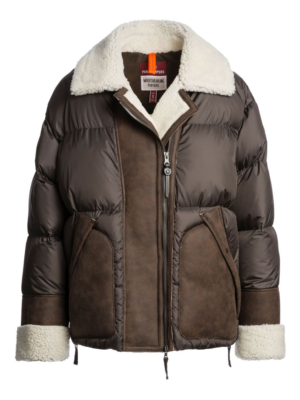 quilted shearling-trimmed puffer jacket Highlights - Dark brown - Quilted shell - Shearling collar - Shearling-trimmed cuffs - Leather-look panels - Zip fastening Imported Composition Lining: Recycled Polyamide 100%, Sheep Skin/Shearling 100%, Duck Down 90%, Duck Feathers 10% Outer: Polyamide 100%, Sheep Skin/Shearling 100% Washing instructions Read Manufacturer Guidelines