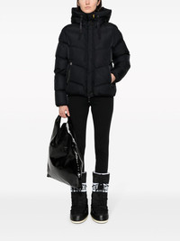 Verna hooded padded jacket Practical outerwear is PARAJUMPER's forte and this black jacket is a fine example. Padded with warm feather down, it features a water-resistant finish and drawstring hood that offer additional protection against unfavourable conditions. Its chunky silhouette lends a contemporary feel whilst a logo patch adorns the sleeve for a branded touch. Highlights - Black - Feather down - Padded design - Quilted - Tonal stitching - Logo patch at the sleeve - Drawstring hood - High neck - Front press-stud fastening - Concealed front zip fastening - Long sleeves - Two side zip-fastening pockets - Straight hem Imported Composition Outer: Polyamide 100% Lining: Polyester 100%, Feather Down 100%, Polyamide 100% SIZE & FIT Model measurements Height 5 ft 10 in(1.78 m) Bust/Chest 31.49 in(80 cm) Hips 36.22 in(92 cm) Waist 25.59 in(65 cm) FittingInformation Designed to be unstructured, offering a loose fit throughout The elasticated hem allows for movement and a comfortable fit Made from a padded non-stretch fabric, giving it no natural elasticity This piece fits true to size – take your usual size Washing instructions Machine Wash