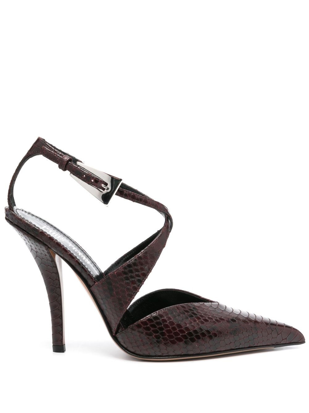 105mm Laila pumps Highlights - Bordeaux red - Buckle-fastening ankle strap - Stiletto heel - Branded insole - Embossed crocodile effect Made in Italy Composition Sole: Calf Leather 100%, Rubber 100% Outer: Calf Leather 100% Lining: Calf Leather 100% SIZE & FIT Measurement HEEL 4.33 in(11 cm)