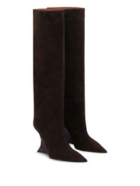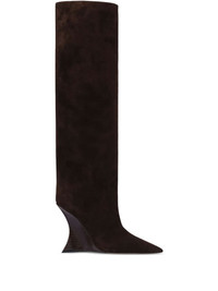 105mm Nina pointed-toe boots Highlights - Brown - Suede - Pointed toe - Knee-high - Wedge heel Made in Italy Composition Lining: Fabric 100% Outer: Calf Suede 100% Sole: Leather 100%