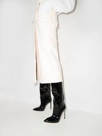 105mm knee-high boots Founded around the concept of 'freedom and expression for the user to let their mood and attitude shine', Paris Texas creates eye-catching footwear silhouettes in bold colours and high-quality materials. Crafted from shiny patent leather, these boots feature an over-the-knee design and sit atop a high stiletto heel, giving them an edgy yet elegant look. Highlights - These black paris texas 105 knee-high patent leather boots are crafted in italy. boasting a pull-on design, they feature a pointed toe and 105 mm heel. whenever you see us do something impressive, just know we’re channeling our inner cruella de vil: ‘we’d like to remind you all that we’re doing this in - Paris texas - heels.’ Made in Italy Composition Lining: Leather 100% Sole: Leather 100% Outer: Patent Leather 100% SIZE & FIT Model measurements Height 5 ft 9 in(1.75 m) Bust/Chest 33.46 in(85 cm) Hips 36.61 in(93 cm) Waist 27.55 in(70 cm) FittingInformation This piece fits true to size. We recommend you get your regular size Measurement HEEL 4.13 in(10.5 cm) CIRCUMFERENCE 13.38 in(34 cm) HEIGHT 15.35 in(39 cm)