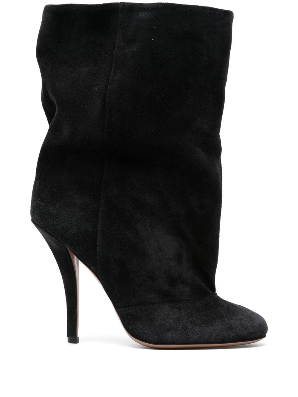 110mm Esther ankle boots Highlights - Black - Calf suede - Round toe - Ankle-length - Branded leather insole - 110mm high stiletto heel - Leather outsole - Slip-on style Made in Italy Composition Suede 100% SIZE & FIT Measurement CIRCUMFERENCE 15.74 in(40 cm) HEEL 4.33 in(11 cm) HEIGHT 7.48 in(19 cm) Sole height 0.39 in(1 cm)