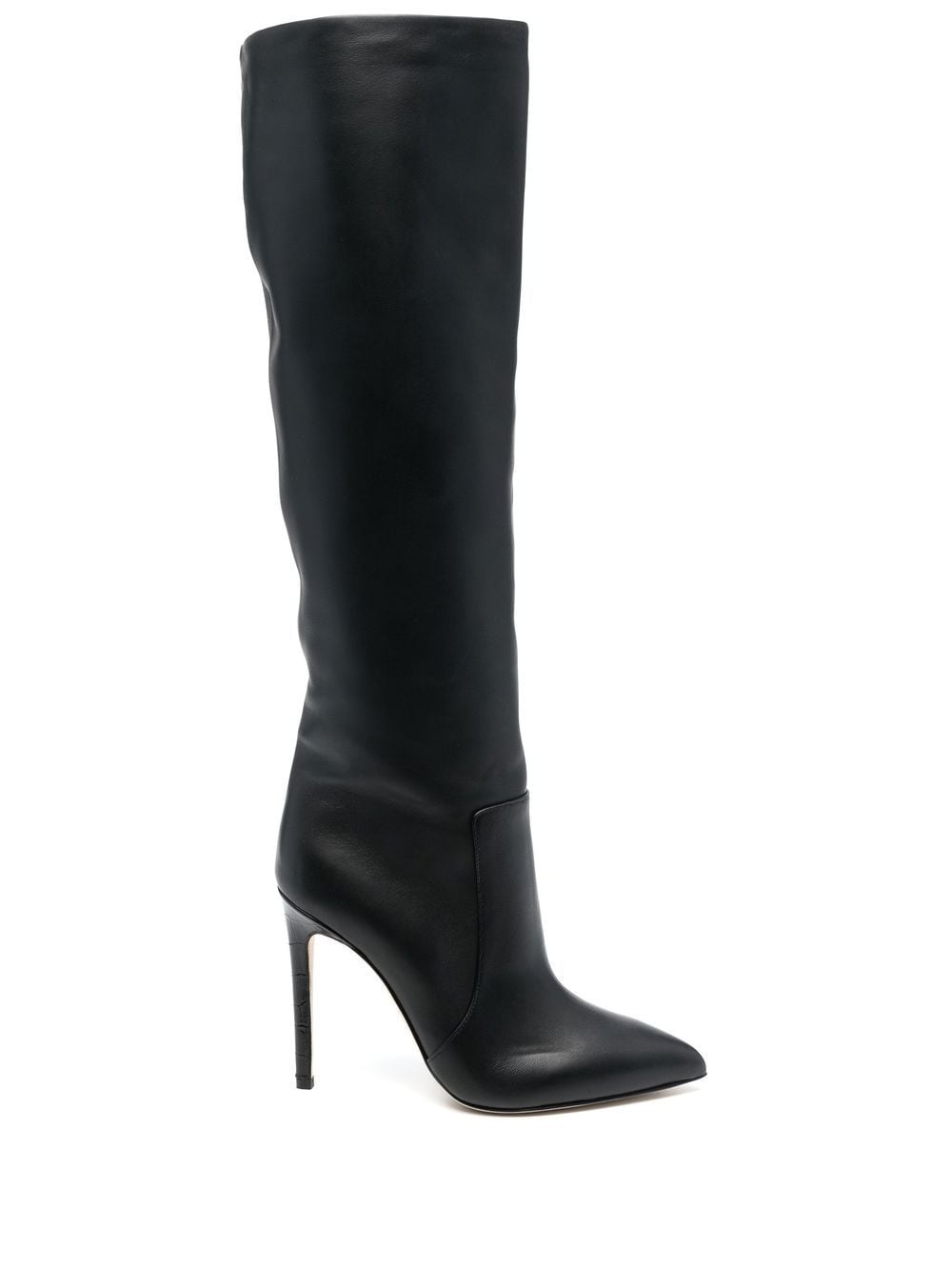 110mm knee-high stiletto boots Experts in creating distinctive footwear, Paris Texas are famed for its charismatic aesthetic and use of fine materials, as demonstrated by these boots which are rendered in a black hue and rest atop a high stiletto heel. Highlights - Black - Calf leather - Pointed toe - Knee-length - High stiletto heel - 110mm heel Made in Italy Composition Outer: Calf Leather 100% Lining: Calf Leather 100% Sole: Calf Leather 100% SIZE & FIT Measurement CIRCUMFERENCE 15.74 in(40 cm) HEEL 4.13 in(10.5 cm) HEIGHT 16.53 in(42 cm)