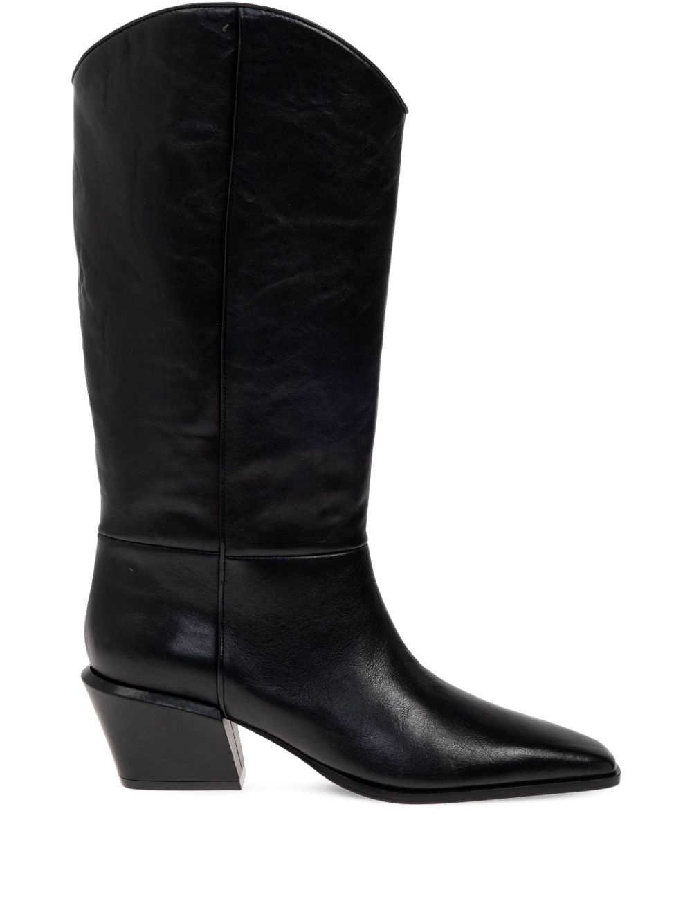 50mm Bettina leather pointed-toe boots Highlights - Black - Leather upper - Pointed toe - Mid-high shaft - Block heel - Western styling Made in Italy Composition Outer: Bos Taurus 100% Lining: Leather 100% Sole: Calf Leather 100% Washing instructions Read Manufacturer Guidelines