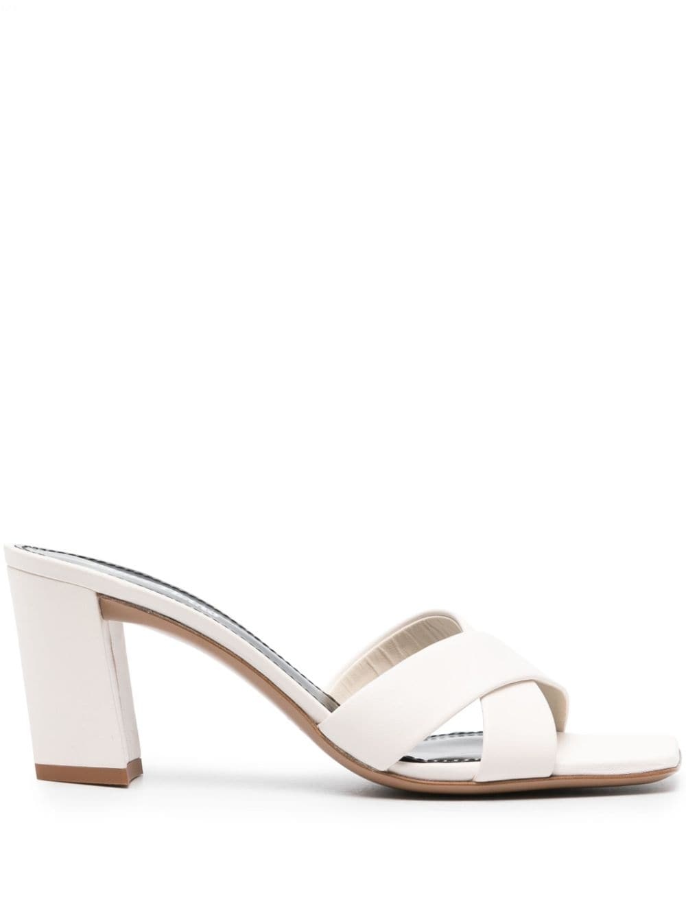 70mm Dafne sandals Highlights - Milk white - Calf leather - Smooth grain - Square open toe - Crossover strap at the toe - Branded leather insole - 70mm mid block heel - Leather sole - Slip-on style Made in Italy Composition Outer: Calf Leather 100% Sole: Calf Leather 100% Lining: Calf Leather 100% SIZE & FIT Measurement HEEL 2.95 in(7.5 cm) Sole height 0.39 in(1 cm)