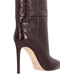 85mm crocodile-embossed knee-high boots Highlights - Brown - Embossed crocodile effect - Pointed toe - Stiletto heel - Slip-on style Made in Italy Composition Sole: Calf Leather 100% Lining: Calf Leather 100% Outer: Calf Leather 100% SIZE & FIT Measurement HEEL 3.34 in(8.5 cm)