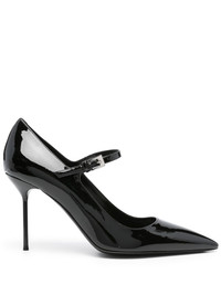 90mm leather heeled pumps Highlights - Black - Buckle-fastening ankle strap - Pointed toe - Stiletto heel - Branded insole Made in Italy Composition Outer: Patent Leather 100% Lining: Calf Leather 100% Sole: Calf Leather 100% SIZE & FIT Measurement HEEL 3.54 in(9 cm)