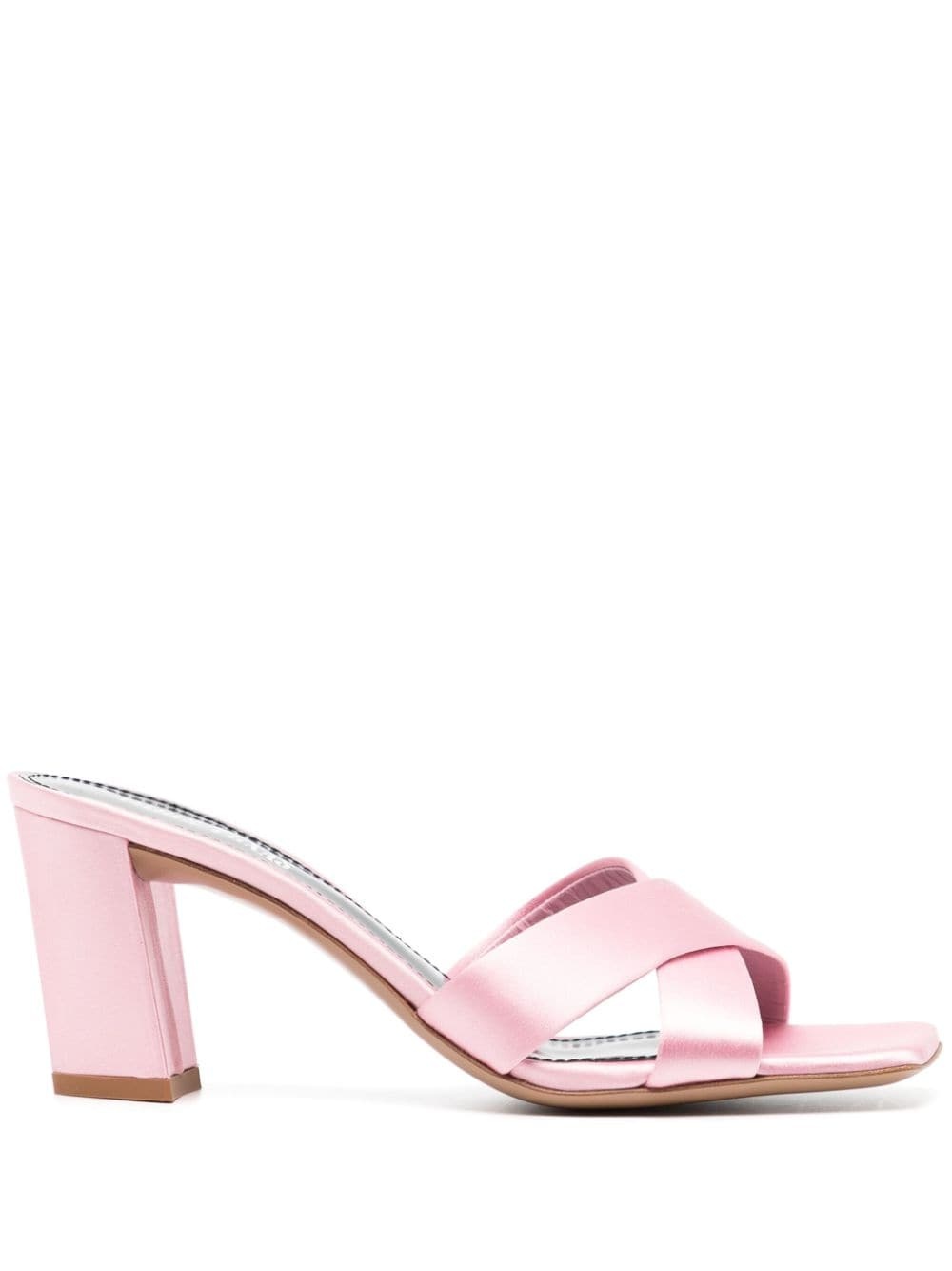 Dafne 80mm satin sandals Highlights - Pink - Leather - Satin finish - Open toe - Crossover strap at the toe - Slip-on style - Branded insole - High 80mm block heel Made in Italy Composition Silk 100% SIZE & FIT Measurement HEEL 3.14 in(8 cm)