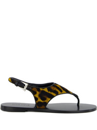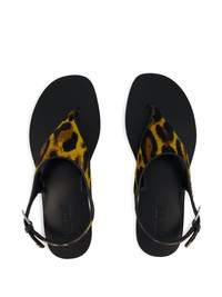 leopard-print flat sandals Highlights - Chocolate brown - Buckle-fastening ankle strap - Round open toe - T-bar strap - Flat sole Made in Italy Composition Outer: Calf Leather 100%, Calf Hair 100% Sole: Calf Leather 100% Lining: Goat Skin 100%