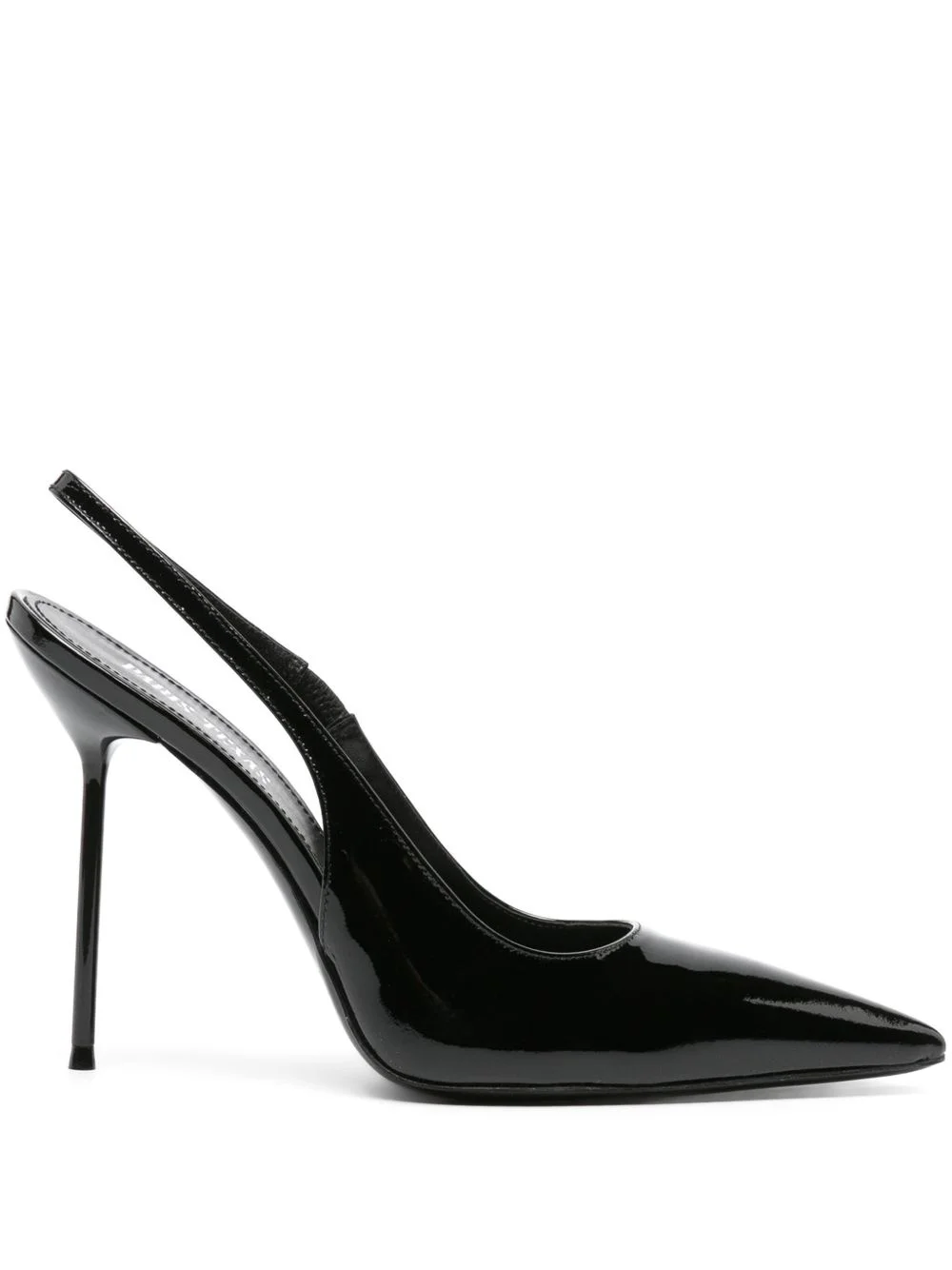 Lidia 120mm leather pumps Highlights - Black - Calf leather - Patent finish - Pointed toe - Elasticated slingback strap - Branded footbed - 120mm stiletto heel - Leather sole Made in Italy Composition Outer: Calf Leather 100% Lining: Calf Leather 100% Sole: Calf Leather 100% SIZE & FIT Measurement HEEL 4.13 in(10.5 cm)