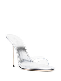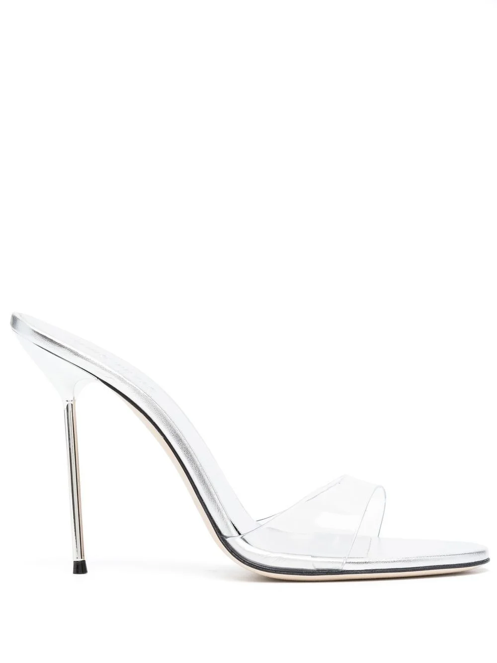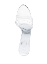 Lidia 120mm sheer-strap mules silver-tone calf leather sheer panels peep toe slip-on style 120mm high heel Made in Italy Composition Lining: Calf Leather 100%, Plastic 100% Sole: Calf Leather 100% Outer: Plastic 100% SIZE & FIT Measurement HEEL 4.72 in(12 cm)