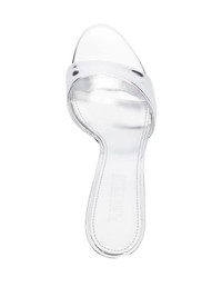 Lidia 70mm leather mules Highlights - Silver-tone - Calf leather - Patent finish - Metallic effect - Almond open toe - Single toe strap - Branded leather insole - Leather sole - 70mm stiletto mid heel - Slip-on style Made in Italy Composition Outer: Patent Calf Leather 100% Lining: Calf Leather 100% Sole: Calf Leather 100% SIZE & FIT Measurement HEEL 2.95 in(7.5 cm) Sole height 0.39 in(1 cm)