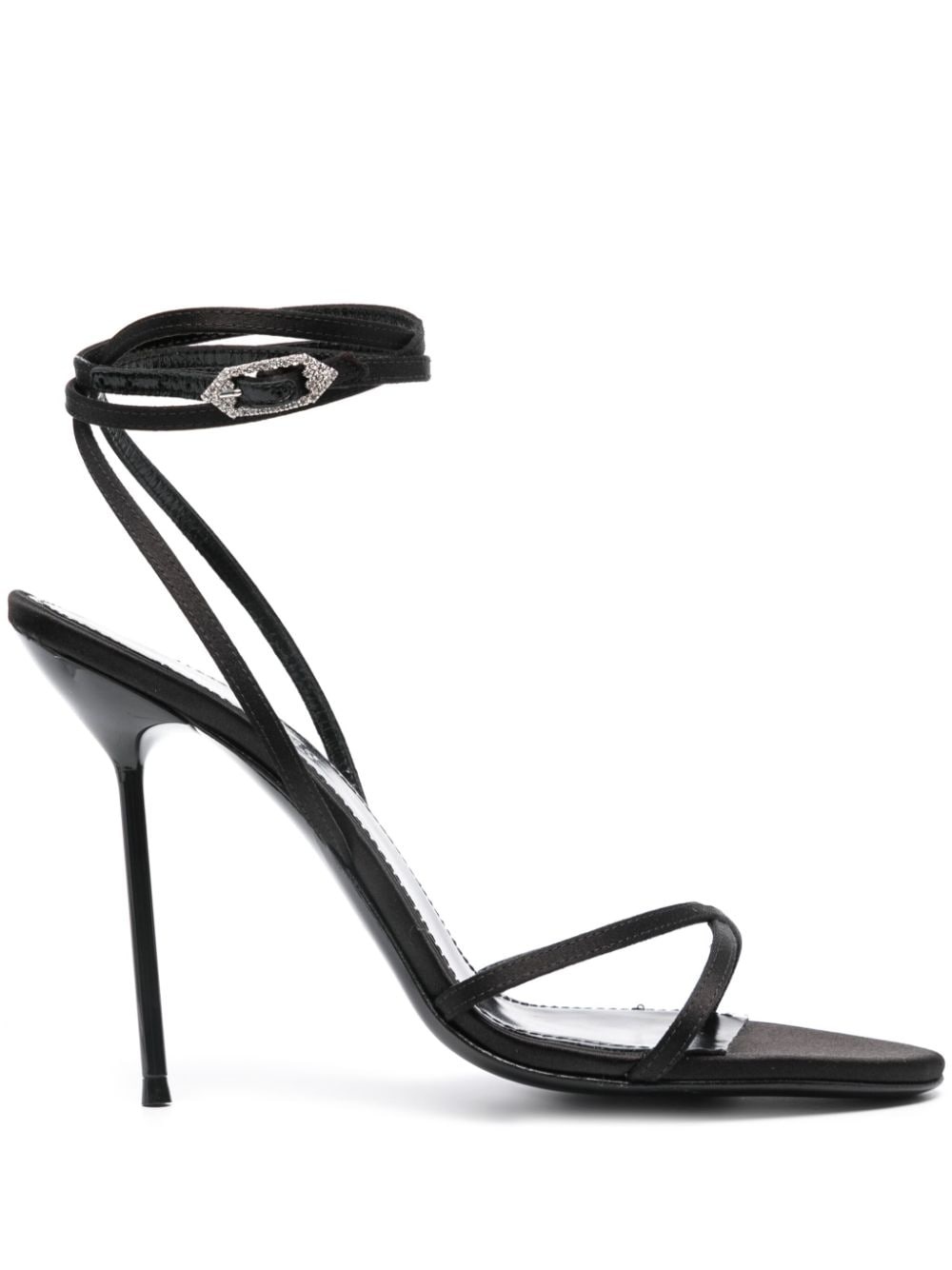 Liz 105mm sandals Paris Texas' seamless blend of Western-inspired motifs and timeless footwear silhouettes is embedded in the Lydia sandals. Crafted from glossy patent-finish calf leather in Italy, they wrap around the ankle with thin straps. Highlights - Liz 105mm sandals - Black - Calf leather - Almond open toe - Crossover strap at the toe - Buckle-fastening ankle strap - Open back - Branded leather insole - Stiletto heel - Leather sole Made in Italy Composition Sole: Calf Leather 100% Lining: Calf Leather 100% Outer: Fabric 100% SIZE & FIT Measurement HEEL 4.13 in(10.5 cm) CIRCUMFERENCE 9.05 in(23 cm) HEIGHT 1.77 in(4.5 cm)