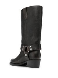 Roxy 45mm leather biker boots Paris Texas channels its rugged Texan DNA in the black Roxy cowboy boots. Made in Italy from premium calf leather, they boast classic design elements such as a buckled strap and stacked heel. A worn effect on the cowhide material adds personality, magnifying the rough, untamed attitude they are infused with. Highlights - Black - Calf leather - Decorative buckle detail - Strap detailing - Square toe - Double pull-tab at the opening - Pull-on style - 45mm stacked heel - Branded leather insole - Leather outsole Made in Italy Composition Sole: Calf Leather 100% Lining: Calf Leather 100% Outer: Calf Leather 100% SIZE & FIT Measurement CIRCUMFERENCE 15.35 in(39 cm) HEEL 1.77 in(4.5 cm) HEIGHT 11.81 in(30 cm) Sole height 0.78 in(2 cm)