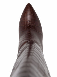 stiletto 85 boots chocolate brown leather crocodile effect pointed toe high stiletto heel slip-on style Made in Italy Composition Outer: Leather 100% Lining: Leather 100% Sole: Leather 100% SIZE & FIT Measurement CIRCUMFERENCE 13.77 in(35 cm) HEEL 3.34 in(8.5 cm) HEIGHT 15.35 in(39 cm)