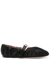 Black Sveva Plisse Buckle Ballerina Flats