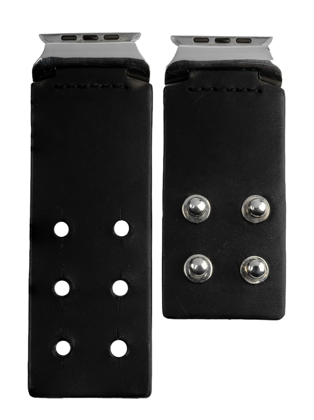 Apple Watch bracelet Highlights - Black - Buffalo leather - Punched holes - Rectangle shape - Only compatible with all apple watch models bigger than 44mm Imported SIZE & FIT Measurement CIRCUMFERENCE 7.08 in(18 cm) WIDTH 1.57 in(4 cm)