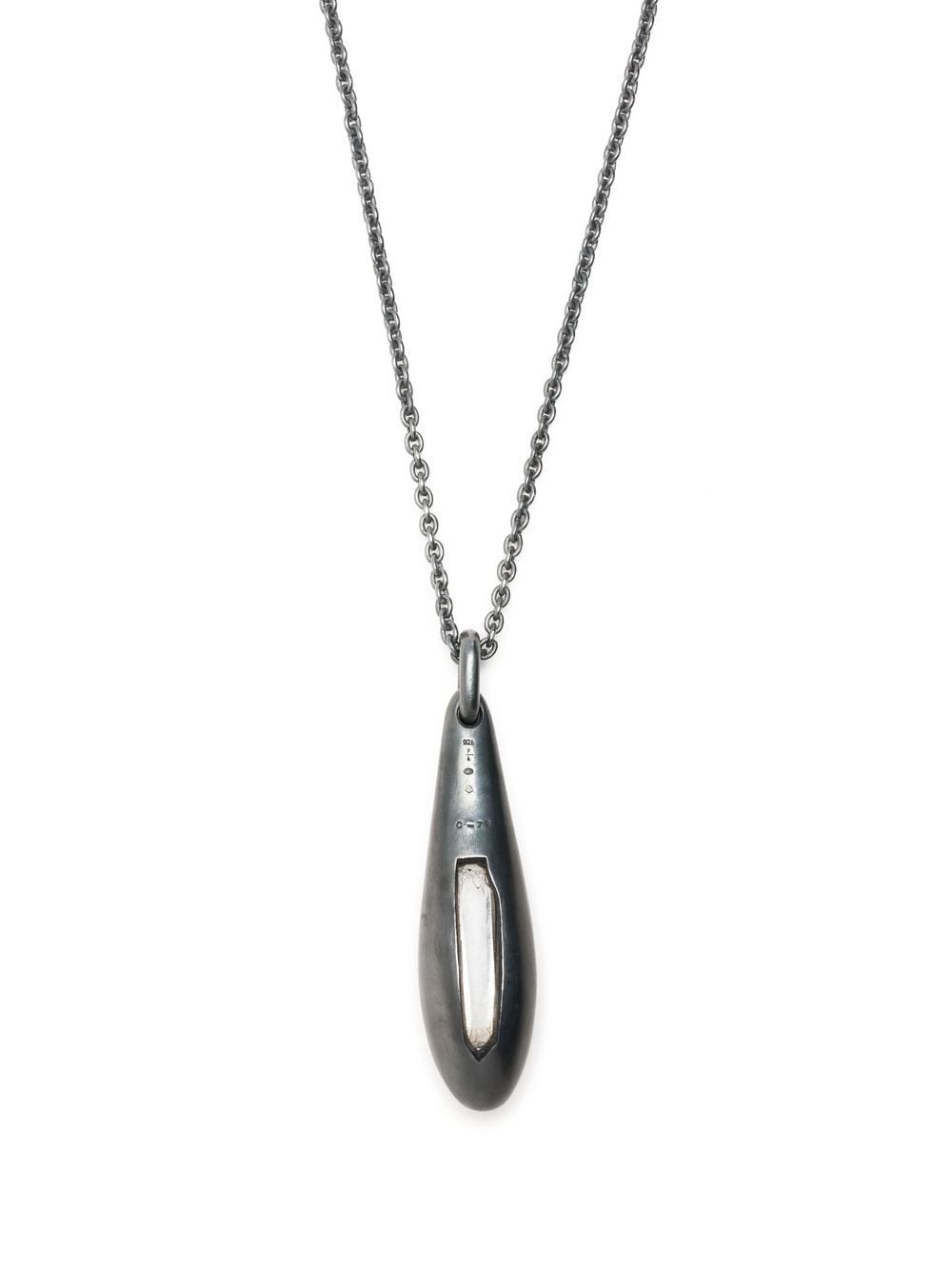 Chrysalis quartz pendant necklace Highlights - Gunmetal grey - Oxidised sterling silver - Quartz - Statement pendant - Rolo chain - Bar-pin fastening Imported SIZE & FIT Model measurements Height 6 ft 2 in(1.87 m) Bust/Chest 38.18 in(97 cm) Hips 36.61 in(93 cm) Waist 29.13 in(74 cm)