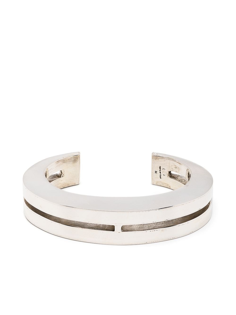 Crescent Crevice 15mm bracelet silver sterling silver engraved detail hinge-pin fastening distressed finish Imported SIZE & FIT Model measurements Height 6 ft 2 in(1.87 m) Bust/Chest 38.18 in(97 cm) Hips 36.61 in(93 cm) Waist 29.13 in(74 cm)