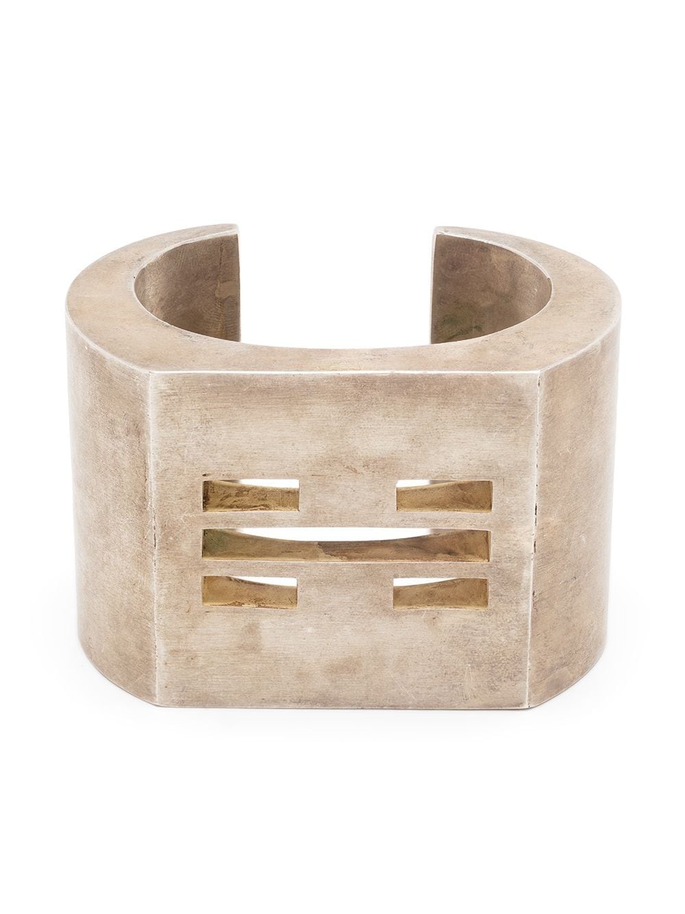 Crescent cut-out bracelet silver-plated brass cut-out detailing curve-edge body open cuff design Imported SIZE & FIT Model measurements Height 6 ft 2 in(1.87 m) Bust/Chest 38.18 in(97 cm) Hips 36.61 in(93 cm) Waist 29.13 in(74 cm)