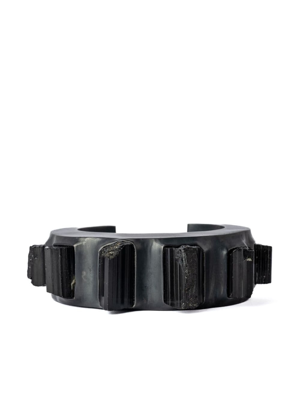 Crescent tourmaline-embellished bracelet Highlights - Black - Silver plated/tourmaline - Polished finish - Gem embellishment - 3d detailing - Open cuff design Imported SIZE & FIT Measurement CIRCUMFERENCE 7.08 in(18 cm)