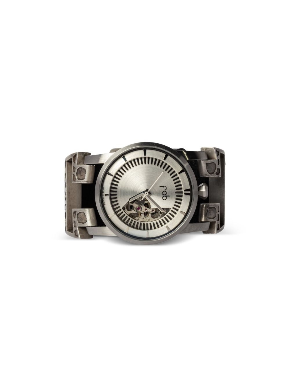 Oblivion Pave 44mm Highlights - Silver dial - Black leather strap - Round case shape - 44 millimetre case size - Buckle clasp - Gunmetal crown - This item comes with a standard one-year warranty from the boutique. Imported SIZE & FIT Measurement WIDTH 1.18 in(3 cm)