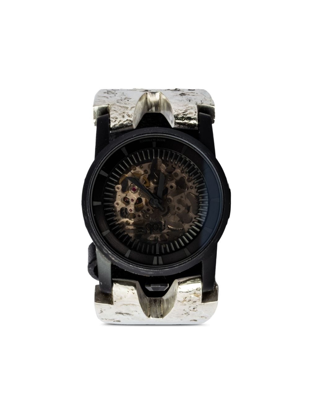 P4—FOB #371 42mm Highlights - Sterling silver/white gold - Automatic movement - Silver-tone - Skeleton dial - Baton hands - Round face - Mineral glass - Skeleton case back - Leather strap - Tang-buckle fastening - 40-hour power reserve - This item comes with a standard one-year warranty from the brand. Made in France SIZE & FIT Measurement CIRCUMFERENCE 7.87 in(20 cm) DIAMETER 1.65 in(4.2 cm) WIDTH 1.18 in(3 cm)