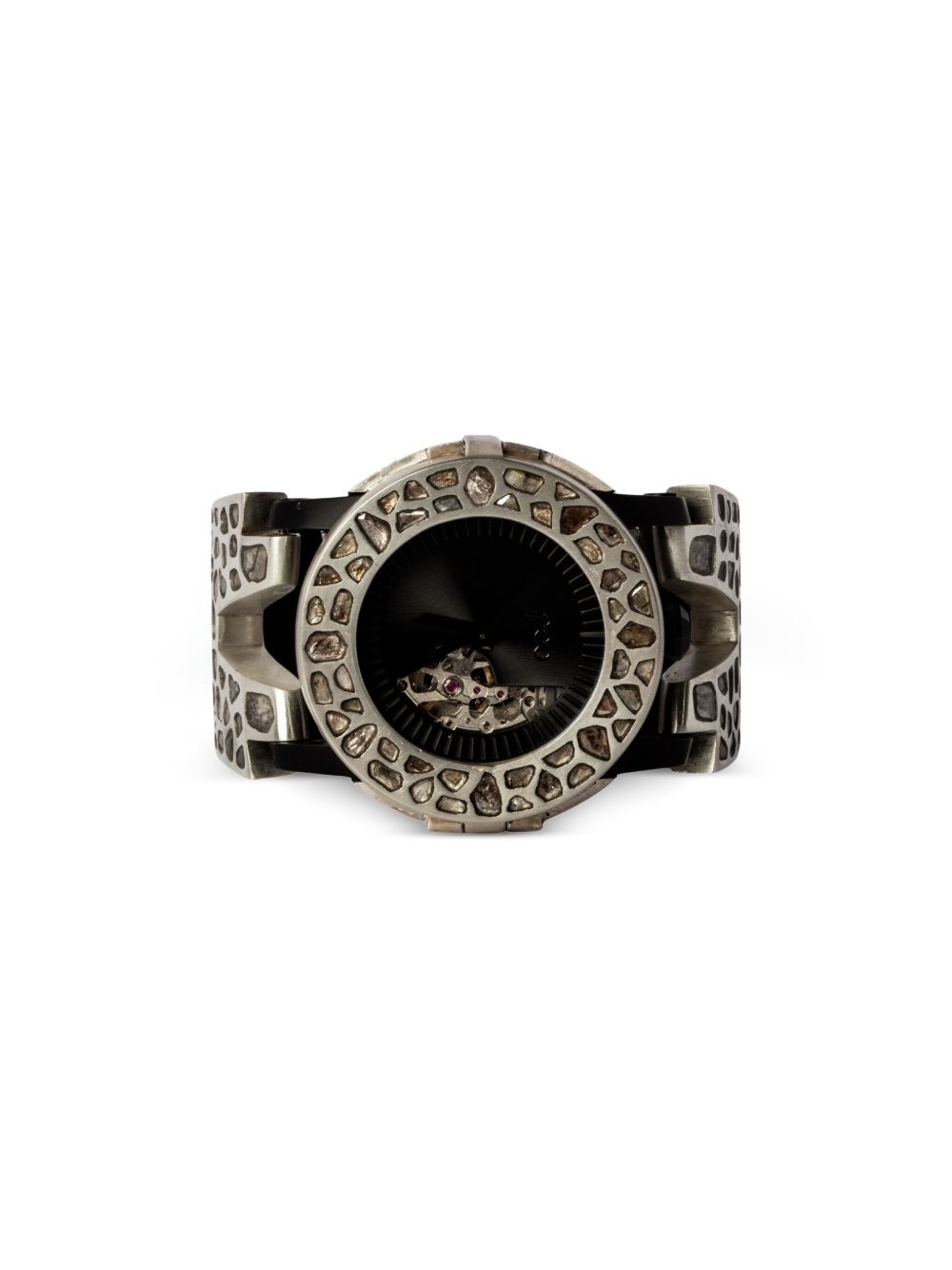 P4—FOB #116 42mm Highlights - Black dial - Round case - Open heart dial - Mega pave bezel - Studded leather strap - Automatic movement - Push crown - This item comes with a standard one-year warranty from the brand. Imported SIZE & FIT Measurement DIAMETER 1.65 in(4.2 cm) Strap width 1.18 in(30 mm)