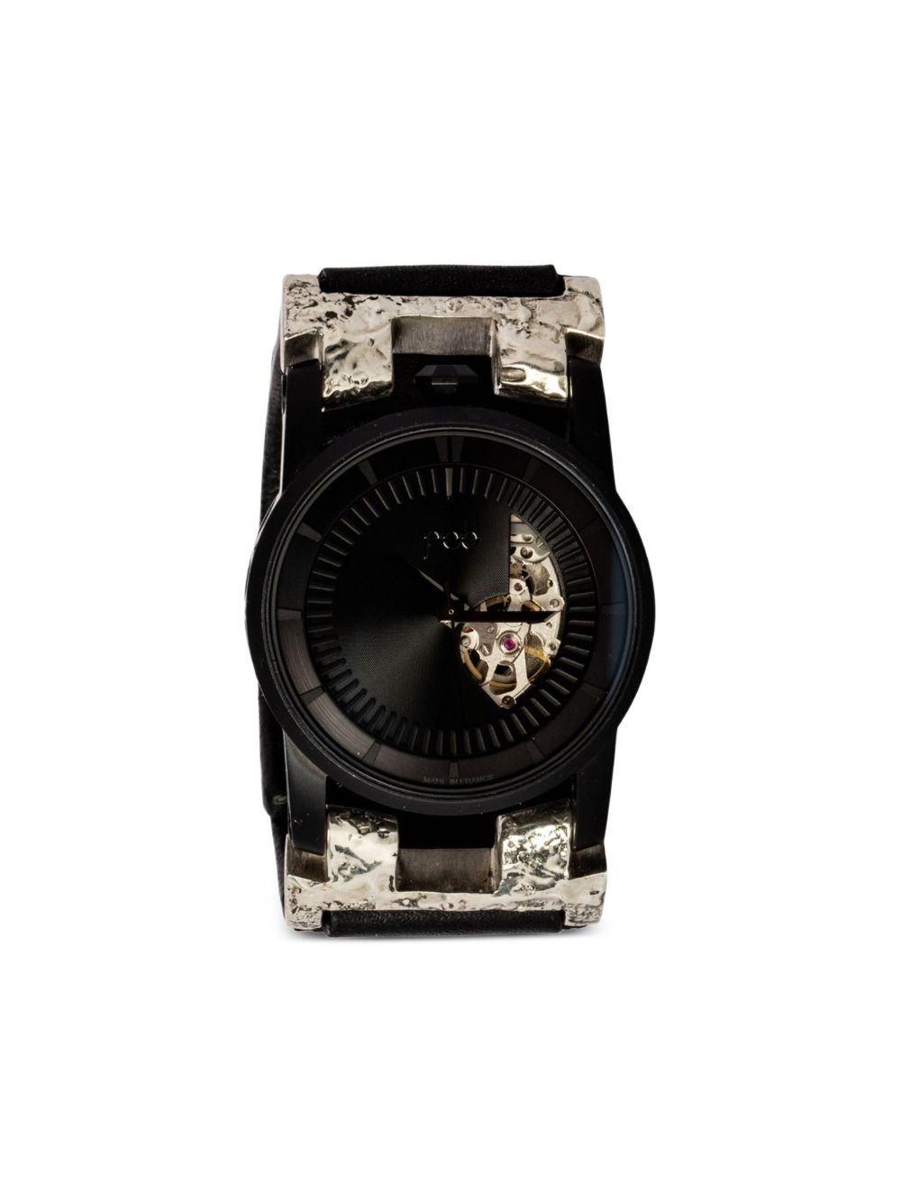 P4—FOB #2724 41.3mm Highlights - Black dial - Round case - Automatic movement - Black dial - Skeleton design - Hammered bezel - 41.3mm case size - This item comes with a standard one-year warranty from the boutique. Imported SIZE & FIT Measurement DIAMETER 1.62 in(4.1 cm) Maximum strap length 7.08 in(18 cm)