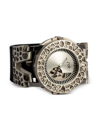 P4—FOB Watch #113 41mm Highlights - Silver-tone dial - Round case - Open heart dial - Mega pave bezel - Automatic movement - Studded leather strap - This item comes with a standard one-year warranty from the brand. Imported SIZE & FIT Measurement DIAMETER 1.65 in(4.2 cm) Strap width 1.18 in(30 mm)