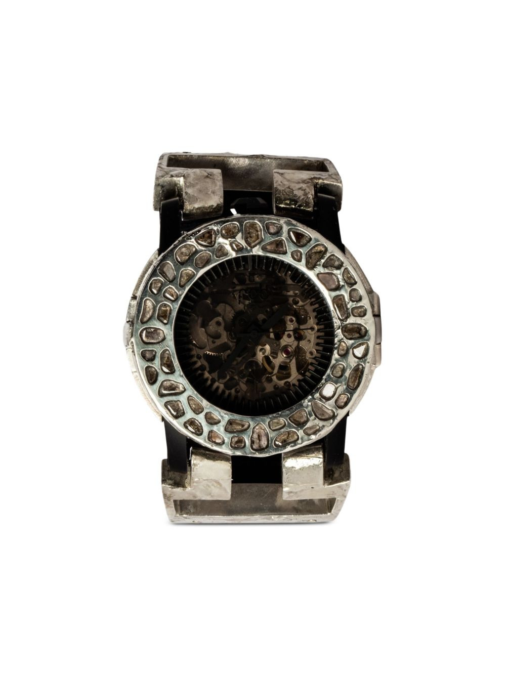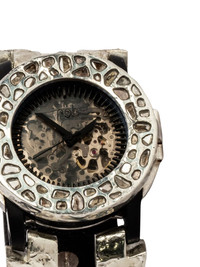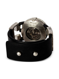 P4—FOB Watch #1251 42mm Highlights - Black - 42mm - Leather strap - Round case - Skeleton dial - Automatic movement - Water resistant - This item comes with a standard one-year warranty from the boutique. - Normal everyday use and external agents may reduce the lustre of gemstones and gold surfaces. to maintain, use specific, non-abrasive products specially meant for cleaning jewellery. Imported Composition Buffalo Leather 40%, Sterling Silver 40%, Diamond 10%, 10K White Gold 10% SIZE & FIT Measurement DIAMETER 1.65 in(4.2 cm) Maximum strap length 7.08 in(18 cm)