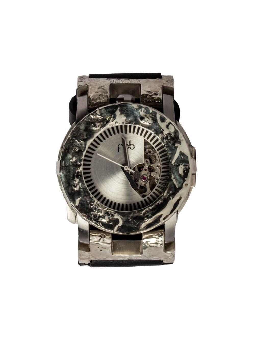 P4—FOB Watch #21 41mm Highlights - Silver-tone - Stainless steel - Skeleton dial - Stick hands - Buckle fastening - Round face - Automatic movement - Leather strap Imported SIZE & FIT Measurement CIRCUMFERENCE 0.7 in(1.8 cm) DIAMETER 1.62 in(4.1 cm) WIDTH 1.29 in(3.3 cm) Washing instructions Read Manufacturer Guidelines