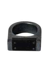 Plate Single matte jet sterling-silver ring Highlights - Black - Oxidised sterling silver - Flat band - Jet stone - Hand-carved - Engraved detail - Oxidised finish - Normal everyday use and external agents may reduce the lustre of gemstones and gold surfaces. to maintain, use specific, non-abrasive products specially meant for cleaning jewellery. Imported