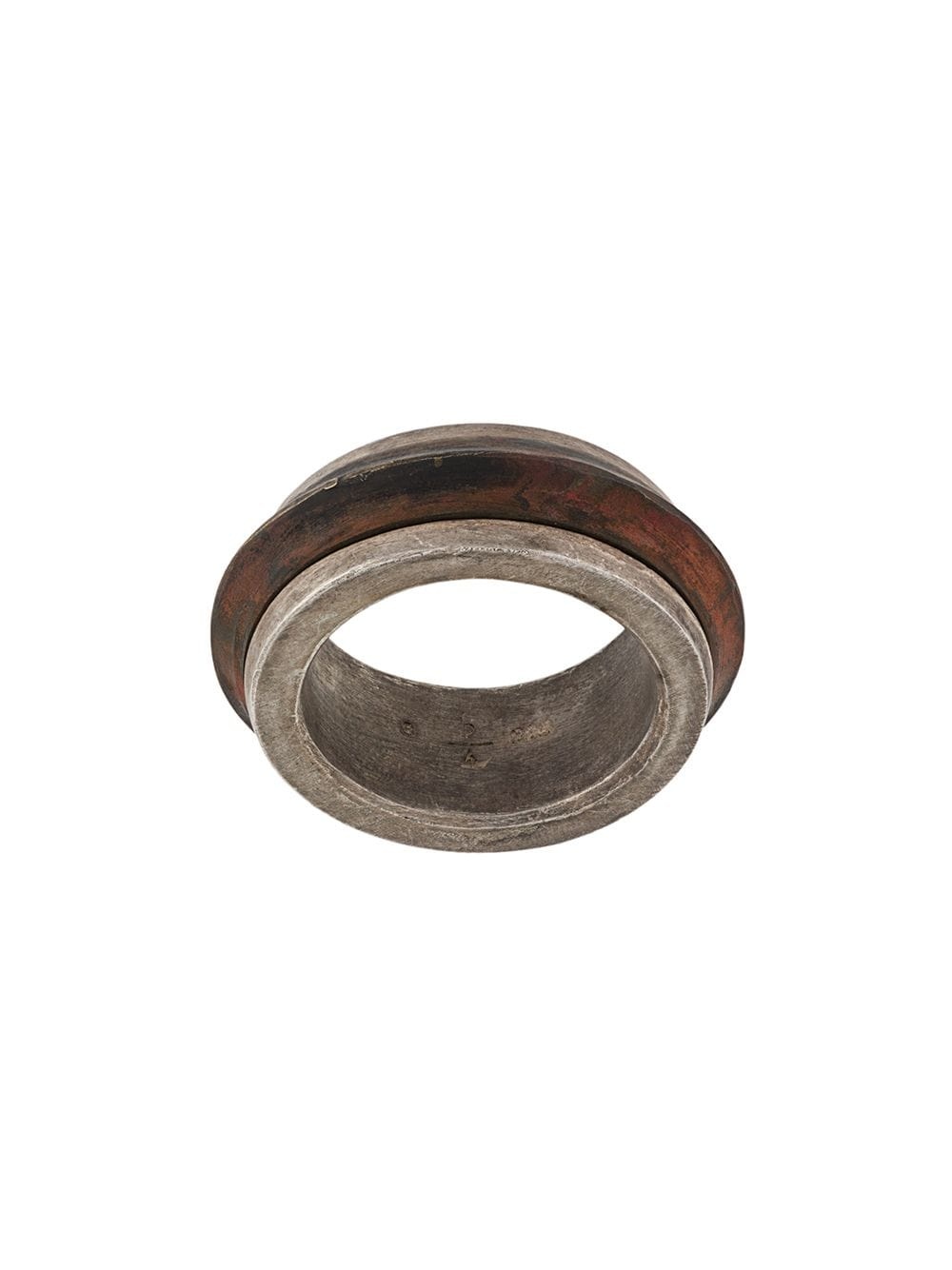 Rotator ring Highlights - Metallic grey - Sterling silver - Chunky band - Distressed finish Imported SIZE & FIT Model measurements Height 6 ft 1 in(1.86 m) Bust/Chest 37.4 in(95 cm) Hips 37 in(94 cm) Waist 30.7 in(78 cm) Measurement Band Width 0.35 in(0.9 cm) CIRCUMFERENCE 2.2 in(5.6 cm)