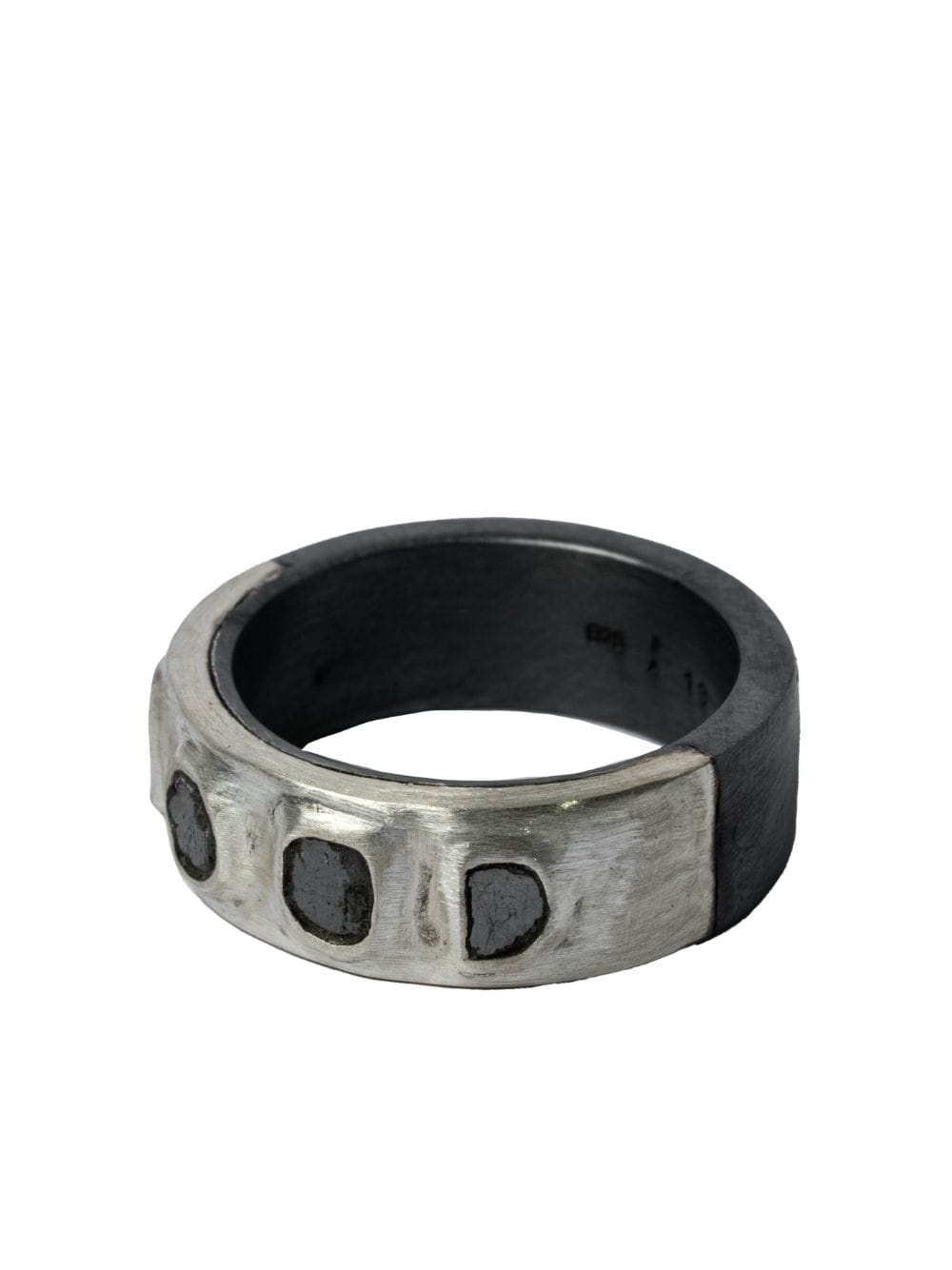 Sistema black diamond sterling-silver ring Highlights - Silver-tone - Sterling silver - Flat band - Inset diamonds - 4 polished black diamond slabs totalling 0.4 carats - Engraved detail - Matte finish - Oxidised finish - Normal everyday use and external agents may reduce the lustre of gemstones and gold surfaces. to maintain, use specific, non-abrasive products specially meant for cleaning jewellery. Imported