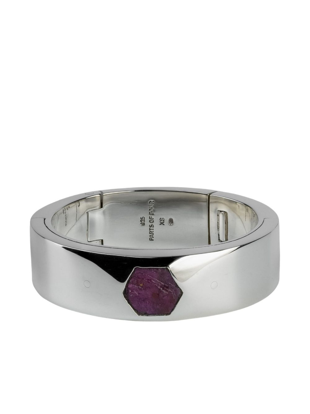 Sistema bracelet Highlights - Silver-tone - Ruby slab - Clasp fastening - Normal everyday use and external agents may reduce the lustre of gemstones and gold surfaces. to maintain, use specific, non-abrasive products specially meant for cleaning jewellery. Imported SIZE & FIT Measurement CIRCUMFERENCE 5.9 in(15 cm) WIDTH 0.66 in(1.7 cm)