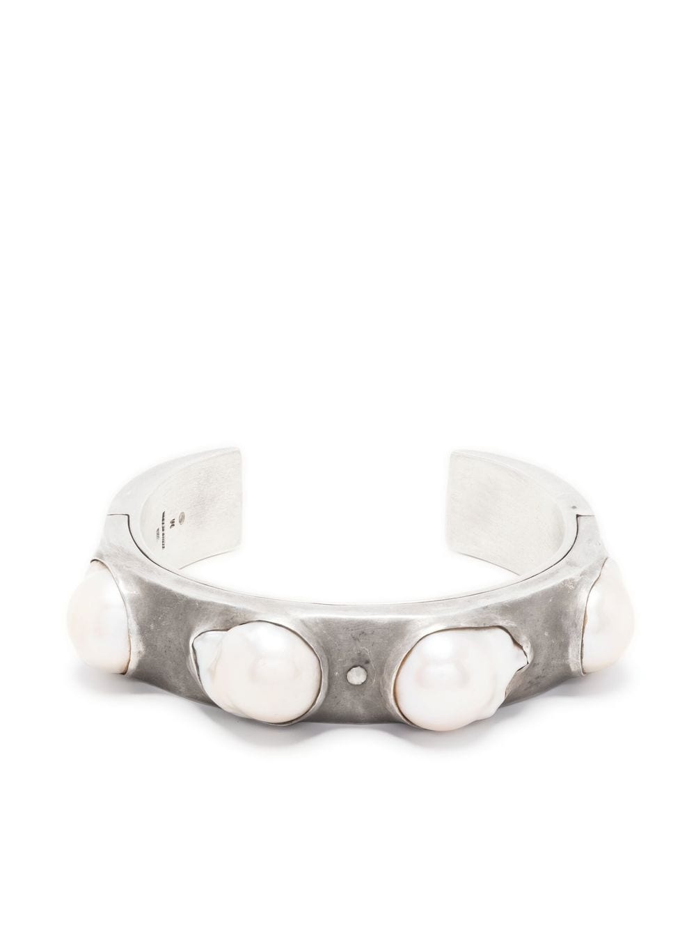 Sistema pearl-inset bracelet sterling silver/baroque pearl antique-effect hardware pearl embellishment clasp fastening engraved logo Imported SIZE & FIT Model measurements Height 6 ft 0 in(1.84 m) Bust/Chest 35.82 in(91 cm) Hips 37 in(94 cm) Waist 28.34 in(72 cm)