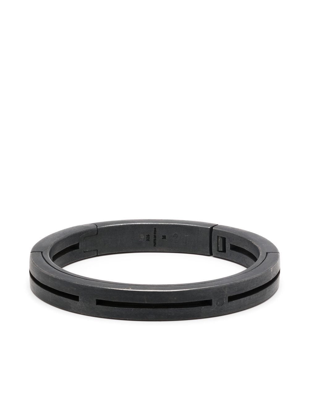 Sistema v2 bracelet dark grey oxidised sterling silver textured finish engraved detail latch-buckle fastening Imported SIZE & FIT Model measurements Height 6 ft 2 in(1.89 m) Bust/Chest 37.79 in(96 cm) Hips 37 in(94 cm) Waist 29.92 in(76 cm)